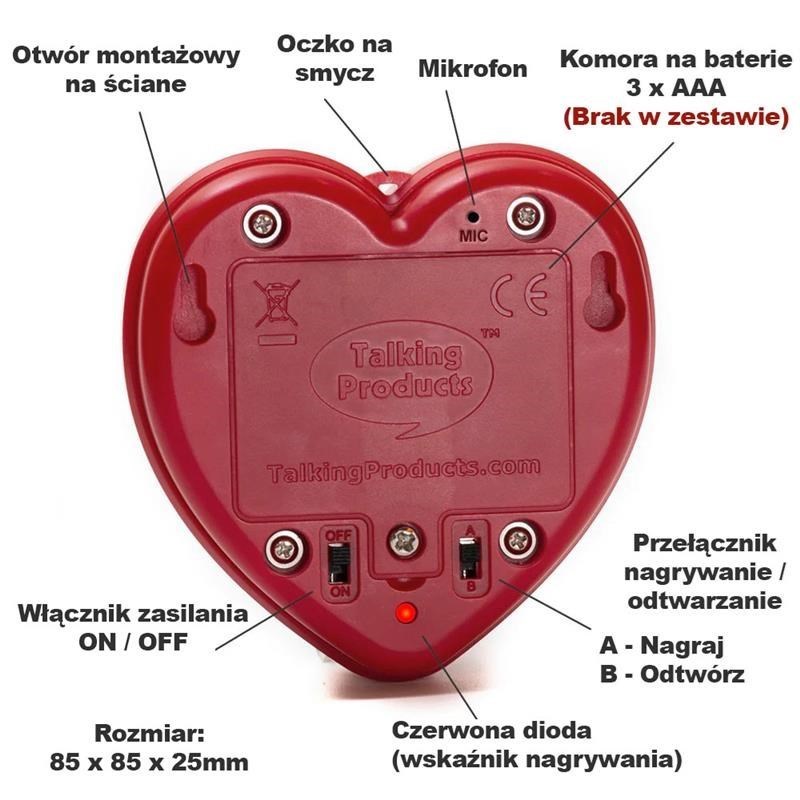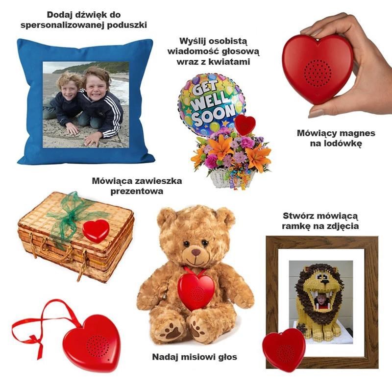 Mówiące serce z czasem nagrywania do 2 minut doskonale sprawdza się w maskotkach, zawieszkach do prezentów, pudełkach niespodziankach i wielu innych zastosowaniach. pozwala przekazać Twoją wiadomość dodając dźwięk do prezentów i prac kreatywnych, nagrywając własny komunikat głosowy, muzykę lub efekty dźwiękowe.